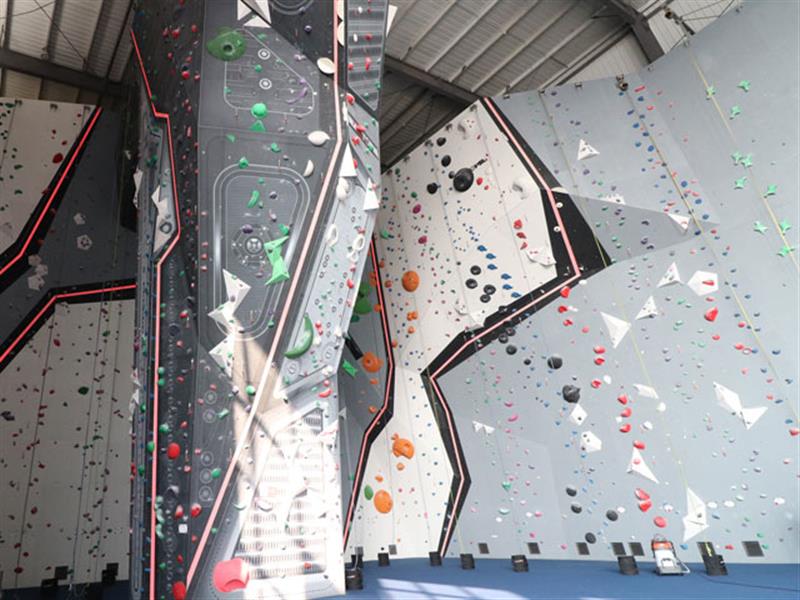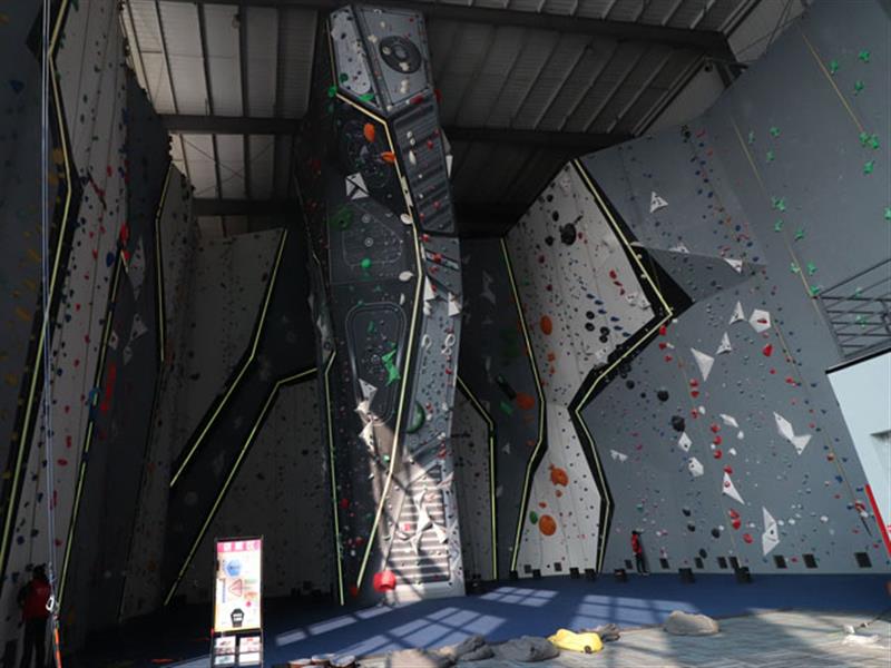 抱石拳巖墻的組成是由巖壁支撐架和攀巖支點組成的,巖壁支架是攀巖墻的主體結(jié)構(gòu),分為獨立結(jié)構(gòu)和有支撐結(jié)構(gòu),選取硬度較高的鋼材質(zhì)結(jié)構(gòu)組成,攀巖支點是攀巖墻的重要配件,它所采用的材料和建造工藝都和抱石攀巖板如出一轍,它的形狀各異,有仿真的,也有卡通的,由不銹鋼螺栓固定在巖板上,作動者攀爬時雙手的握點和腳的登點。