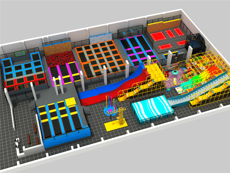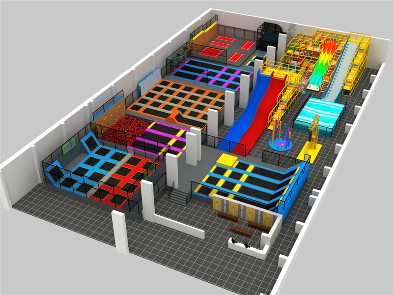 蹦床館并不是簡單的找一個商鋪就行,因為設備安裝的標準需要,在高度還有面積上有著比較高的選擇標準。首先高度最低應該在4米以上,如果是專門針對于成年人的場館凈高度應該達到5米以上,這樣才能夠滿足不同娛樂設施的安裝使用要求。在面積上很多人認為越大越好,其實面積應該與設備的利用率相結合合理使用,但是一定要平整光滑,并且通風良好。